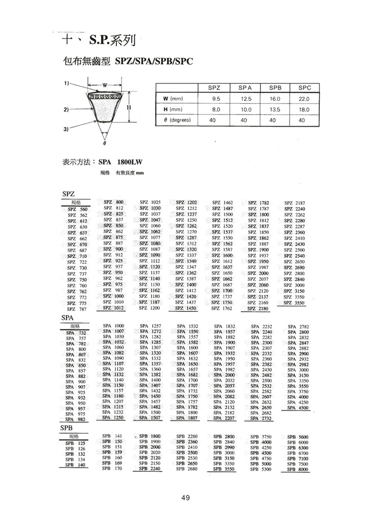 切邊內齒型:XPZ /XPA /XPB /XPC